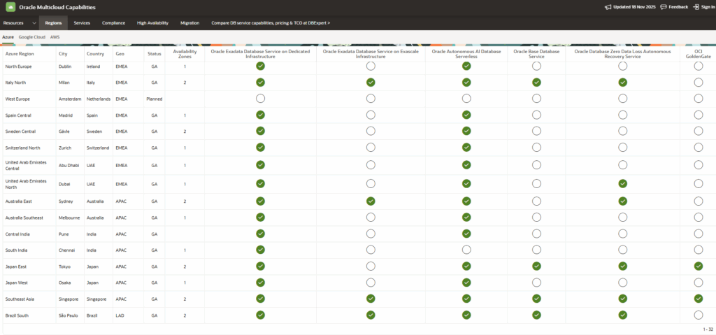 1 thought on ““Your Guide to Oracle Multi-Cloud: How and Where to Track Service Availability””